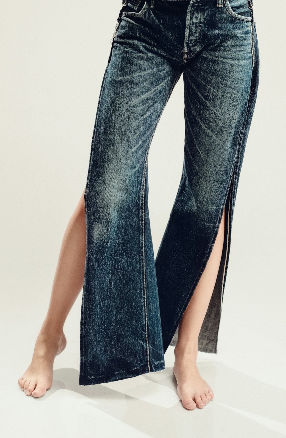 One example of highly Romantic denim is these side slit jeans: