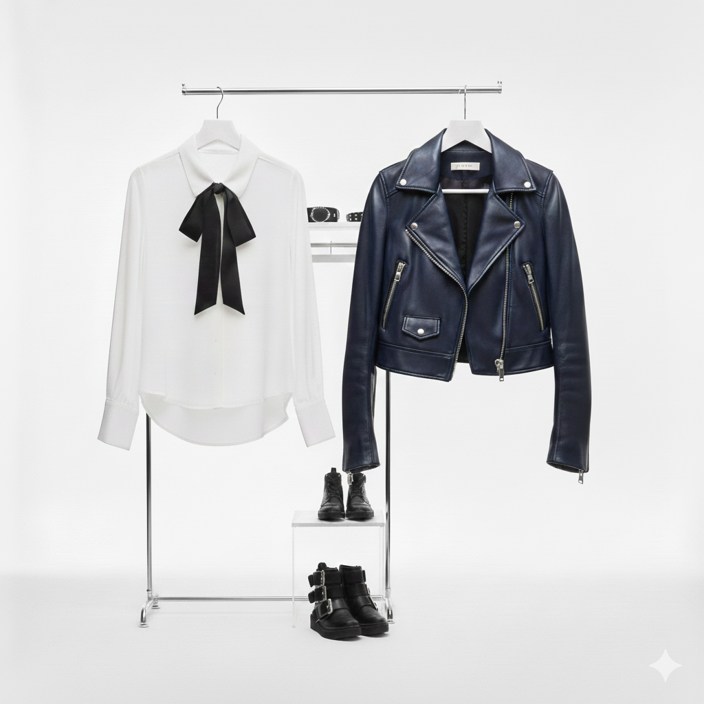 Soft blouses with high collars and bows (Ingenue), plus high-contrast colors (Gamine).