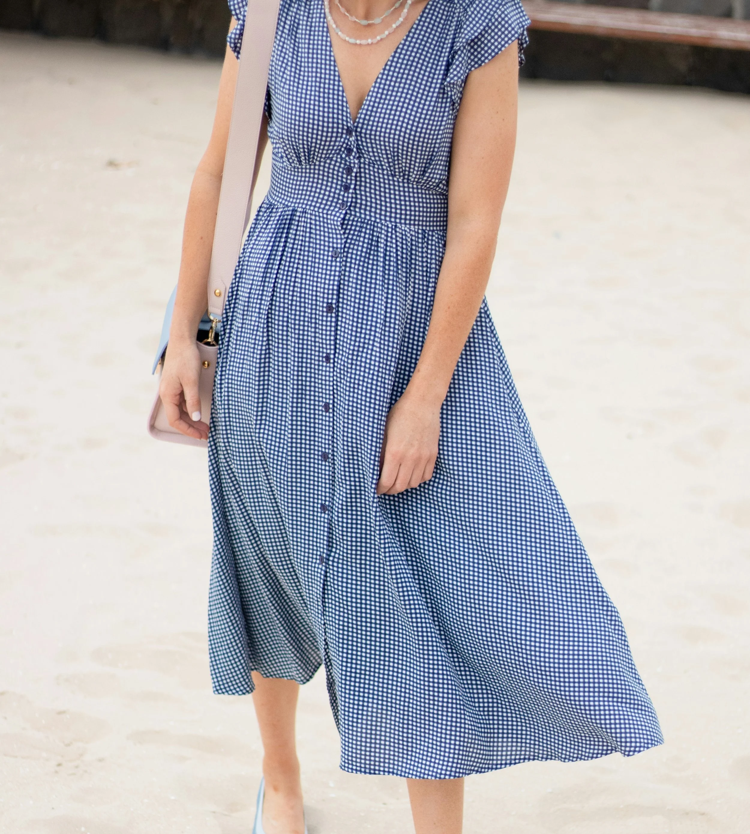 The gingham print in a laidback blue and white color scheme works for Natural, too.